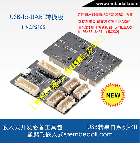 - Kit-CP2105采用Silabs公司的CP2105控制器,支持雙路UART.