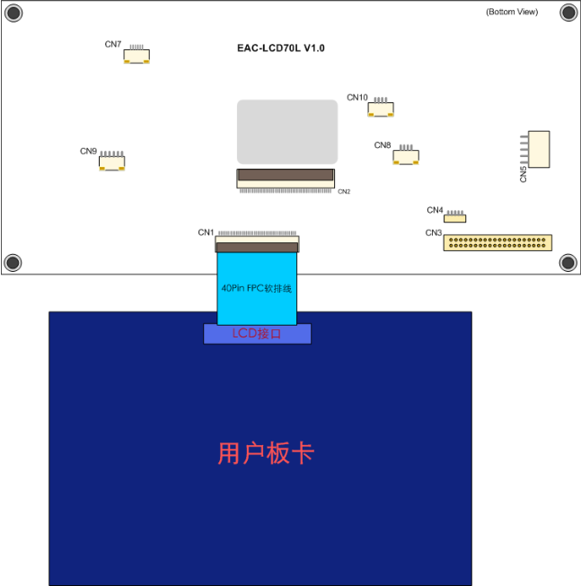 1.模塊的CN1(1*50pin 0.5mm)接口與本公司EVB-335X板卡的LCD接口兼容,可直接連接使用