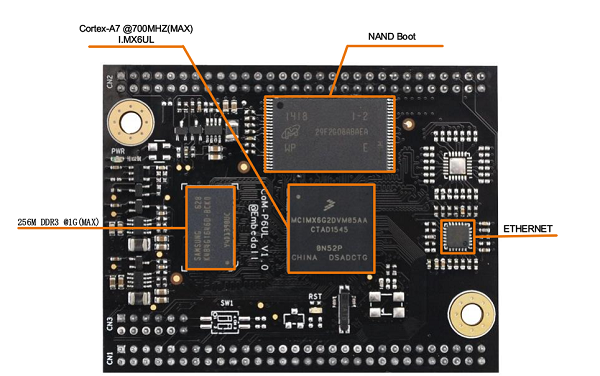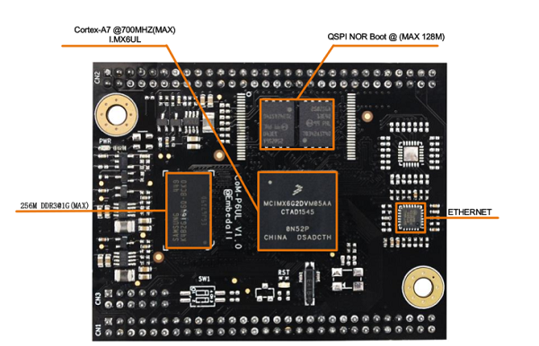 1.采用NXP公司Cortex-A7 I.MX6UL處理器,運(yùn)行最高速度為700MHZ,低功耗