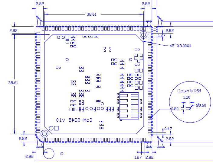 ◆ 精致郵票孔設(shè)計(jì),45mm*45mm,128PINS;