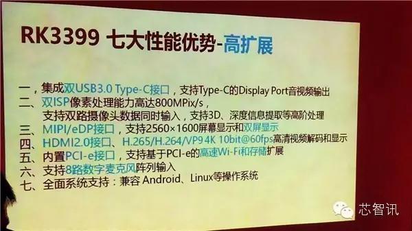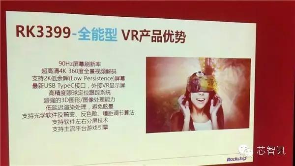 2016年4月14日下午,瑞芯微Rockchip在香港面向全球媒體與核心通路、方案合作伙伴發(fā)布了新一代旗艦級(jí)芯片——RK3399。據(jù)了解,瑞芯微RK3399具備高性能、高擴(kuò)展應(yīng)用等特點(diǎn),是目前Rockchip產(chǎn)品線中性能最強(qiáng)的芯片,整體硬件規(guī)格處于行業(yè)處領(lǐng)先地位。 big.LITTLE六核架構(gòu) Mali-T860MP4 GPU △基于RK3399的主板 據(jù)介紹,RK3399在CPU采用big.LITTLE大小核架構(gòu),擁有兩顆Cortex-A72大核心 四顆Cortex-A53小核心,最高主頻可達(dá)2.0GHz,是一顆64位六核處理器。 相比四核A72 四核A53的組合來說,雙核A72 四核A53的功耗要低很多,性能并不會(huì)弱多少,在能效比上還要更高一些。所以這可能也正是瑞芯微選擇雙核A72 四核A53這樣組合的一個(gè)原因。 據(jù)了解,RK3399依然還是采用的是28nm工藝。 對(duì)于為何沒有采用新的16nm工藝的問題。瑞芯微方面對(duì)芯智訊表示,“而目前28nm是最為成熟的工藝。我們測(cè)試的結(jié)果顯示,如果我們采用16nm,功耗可能比現(xiàn)在的28nm還要高。因?yàn)闆Q定芯片功耗的并不只是制程,還有其他很多方面。” 瑞芯微強(qiáng)調(diào),RK3399針對(duì)整數(shù)、浮點(diǎn)、內(nèi)存等方面作了大幅優(yōu)化,使得該處理器在整體性能、功耗及核心面積三個(gè)方面都具革命性提升。 而在GPU方面,RK3399集成了ARM新一代高端圖像處理器Mali-T860@MP4 GPU,集成更多帶寬壓縮技術(shù):如智能迭加、ASTC、本地像素存儲(chǔ)等,還支持更多的圖形和計(jì)算接口。據(jù)介紹,總體性能比上一代提升了45%。而這也使得RK3399可以運(yùn)用到VR這一類對(duì)于圖形處理要求很高的產(chǎn)品上。 強(qiáng)大的擴(kuò)展性 在擴(kuò)展性方面,瑞芯微為RK3399總結(jié)了七大優(yōu)勢(shì): 1、支持雙USB 3.0 Type-C,最高傳輸速率可達(dá)每秒10Gbps。同時(shí)還支持Type-C的Display Port音視頻輸出。目前市場(chǎng)上有很多的USB Type-C設(shè)備,但是大多僅支持正反插、充電和數(shù)據(jù)傳輸,真正支持Display Port音視頻輸出的確實(shí)不多。 2、支持最高1300萬攝像頭,雙路攝像頭數(shù)據(jù)同時(shí)輸入,支持2D轉(zhuǎn)3D(這個(gè)之前在RK3288上就有),支持深度信息提取,即可支持手勢(shì)識(shí)別。 3、采用的是MIPI/eDP接口,支持2560×1600顯示屏和雙屏顯示。 4、支持HDMI2.0接口。支持H.264/H.265以及最新的VP9標(biāo)準(zhǔn)的 4K 10bit@60fps高清視頻解碼和顯示。而目前市面上的4K大多都是8bit的,并且很多還是跑的30fps。 5、存儲(chǔ)方面支持支持DDR3\LPDDR3\LPDDR4內(nèi)存和eMMC 5.1閃存。此外內(nèi)置PCI-e接口也是RK3399非常大的一個(gè)優(yōu)勢(shì),這使得基于RK3399不僅可以外接基于PCI-e的WiFi,也使得基于RK3399的筆記本、一體機(jī)或者瘦客戶端產(chǎn)品可以直接掛載支持PCI-e接口的硬盤。 6、支持8路數(shù)字麥克風(fēng)陣列輸入。 7、兼容Android、Linux等操作系統(tǒng)。鑒于RK3288已經(jīng)支持Chrome OS,相信RK3399后續(xù)也將會(huì)支持。另外此前有傳聞稱,RK3399還可能將會(huì)支持Windows 10移動(dòng)版系統(tǒng)。而目前支持Windows 10移動(dòng)版系統(tǒng)的只有高通。 應(yīng)用領(lǐng)域廣泛 得益于高配置和整體性能的提升,以及全面型布局,使得RK3399天生就是一位多面能手。除了瑞芯微一直深耕的安卓平板外,諸如2合1設(shè)備、OTT電視盒子、安卓游戲機(jī)以及時(shí)下火熱的VR領(lǐng)域,RK3399都有著很好的支持。 對(duì)于VR設(shè)備而言,眩暈是一個(gè)需要突破的技術(shù)難點(diǎn)。目前,全球公認(rèn)的普通人可接受的VR延遲是低于20ms,否則會(huì)引起眩暈、嘔吐等強(qiáng)烈不適。解決這個(gè)問題,則需要處理器的支持。 RK3399針對(duì)VR設(shè)備運(yùn)用深度優(yōu)化的低時(shí)延技術(shù),使得總體小于20ms。據(jù)了解,這個(gè)低延遲渲染的技術(shù)是在保證位置不變的情況下, 把渲染完的畫面根據(jù)最新獲取的傳感器朝向信息計(jì)算出一幀新的畫面, 再提交到顯示屏。結(jié)合驅(qū)動(dòng)級(jí)、圖像引擎級(jí)的優(yōu)化,最終可呈現(xiàn)舒適的視覺環(huán)境,比未優(yōu)化的Android系統(tǒng)提升5倍以上。同時(shí),其具備75Hz以上刷新率(可以達(dá)到90Hz)、4K UHD解碼等優(yōu)勢(shì)特點(diǎn)。 而正是基于強(qiáng)大的硬件支持,使得RK3399擁有更出色的圖像解碼、豐富的游戲引擎以及3D圖像處理能力,可為終端提供更快的運(yùn)算速度與視覺效果,對(duì)產(chǎn)品體驗(yàn)產(chǎn)生極大促進(jìn)作用。 除了上面有提及的平板電腦、VR、TV-BOX、筆記本之外,RK3399的應(yīng)用還涵蓋了工業(yè)及消費(fèi)領(lǐng)域各類終端,包括智能家電、廣告機(jī)/一體機(jī)、金融POS機(jī)、車載控制終端、瘦客戶機(jī)、VOIP視頻會(huì)議、安防/監(jiān)控/警務(wù)及IoT物聯(lián)網(wǎng)等領(lǐng)域。 此前RK3288在中端市場(chǎng)的表現(xiàn)就很出色,而作為比其更高階的RK3399來說,這樣一款“全能型”芯片,其市場(chǎng)定位也開始瞄向了高端市場(chǎng)。 “RK3399不會(huì)被用在三四百塊錢的低端產(chǎn)品上。‘中國芯’為什么就一定要廉價(jià)呢?”瑞芯微負(fù)責(zé)人對(duì)芯智訊說到。